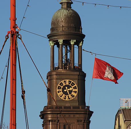 als Hafenstadt - es ist die Hamburger Hafenflagge. Rechts daneben die